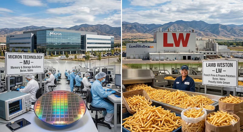 One of these two companies based in Idaho makes memory chips and the other one makes potato chips (borrowing from the British who call french fries, chips). And the one making memory chips is nearly 100 times the size of the other. Investors doubling down on the AI “picks and shovels” trade and cutting back on food in this new world of GLP-1 drugs partially explains the huge chasm between the two.