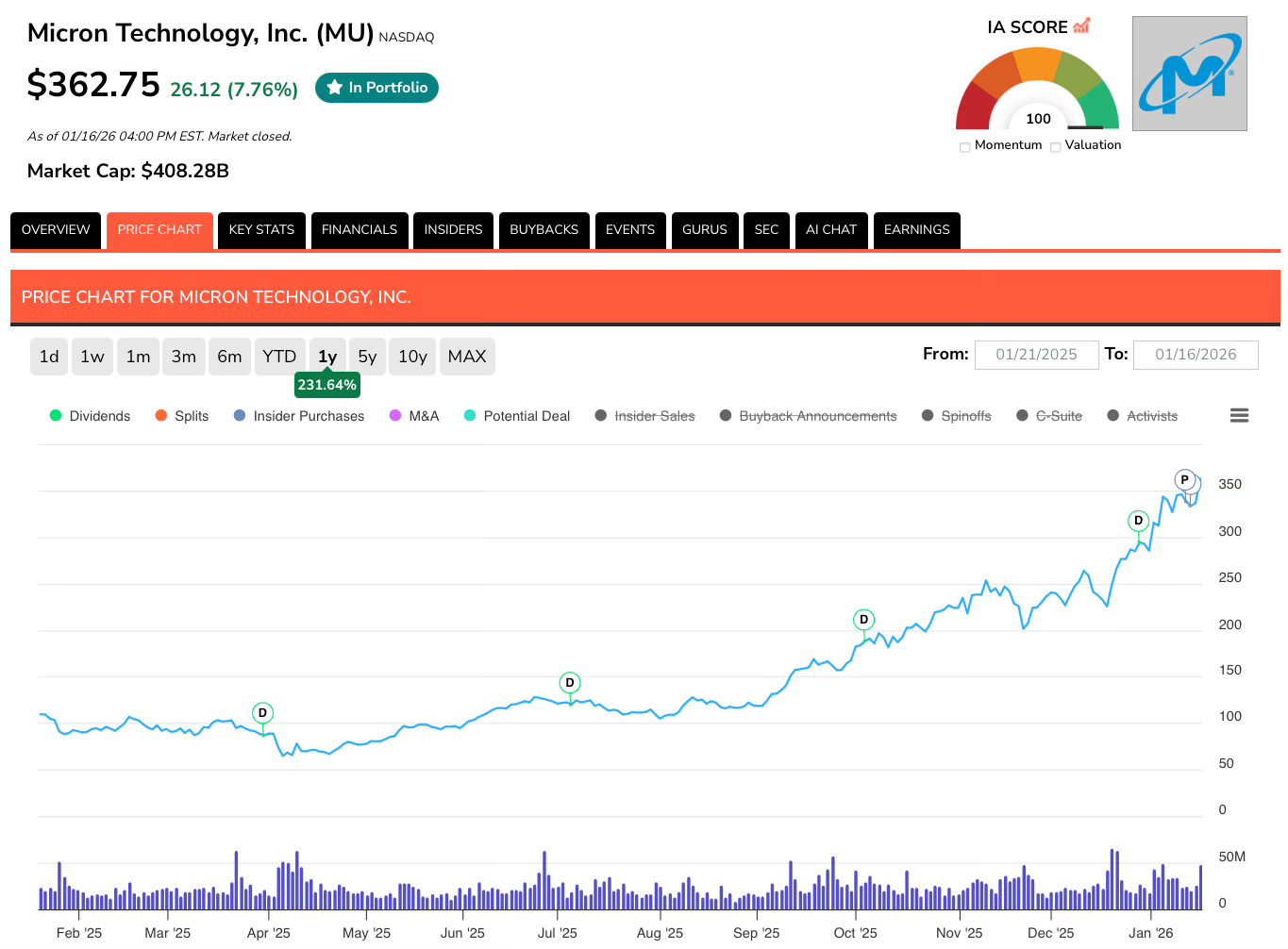 Micron Technology (MU) has also seen insider buying this year and some of what we wrote about the company in an Insider Weekends article in January is as follows:
